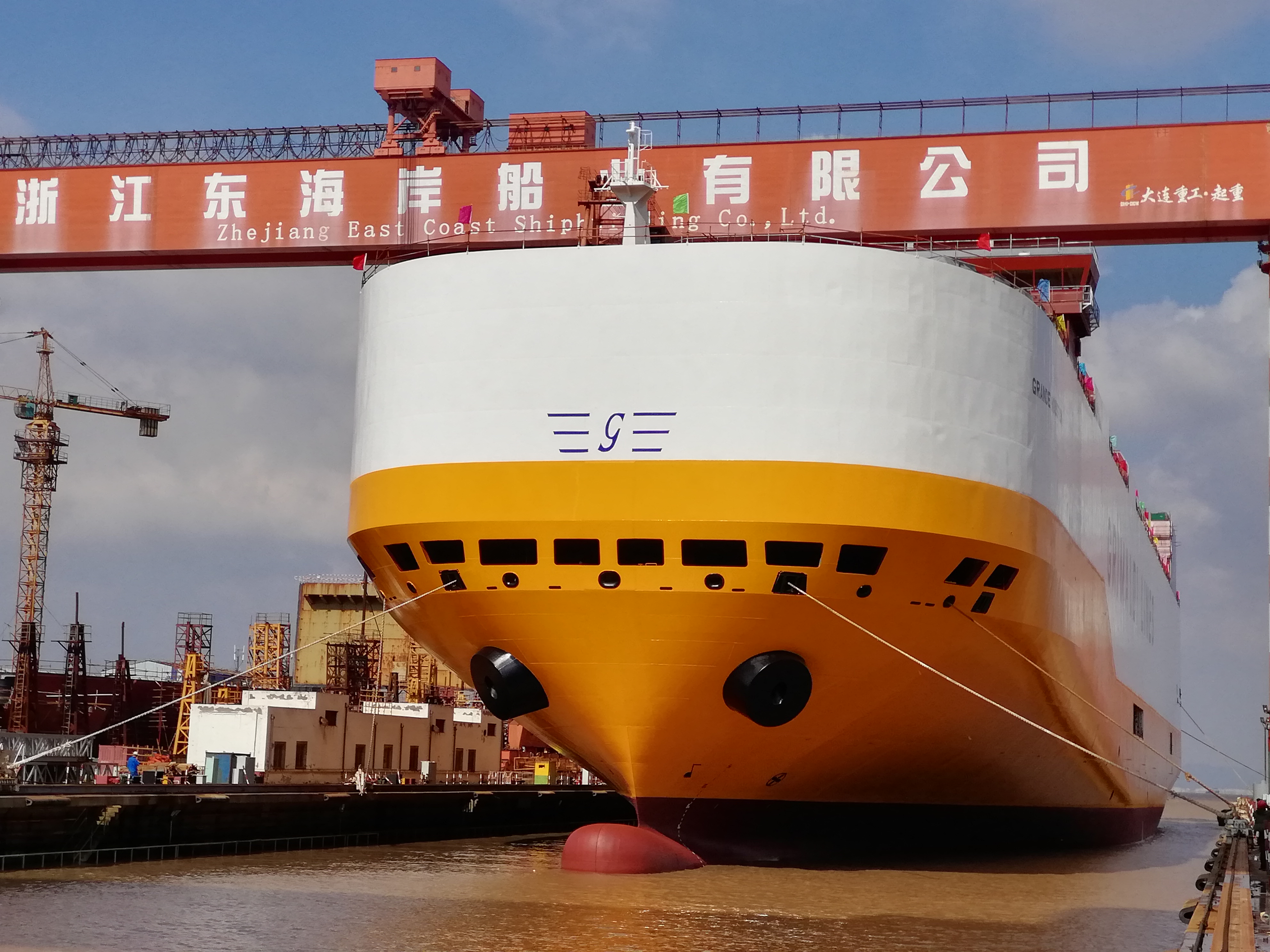 2019年10月19日上午,揚帆集團下屬浙江東海岸船業有限公司一艘7800PCTC系列汽車滾裝船順利下水,出塢狀態完整性超越已交付的兩艘系列船。