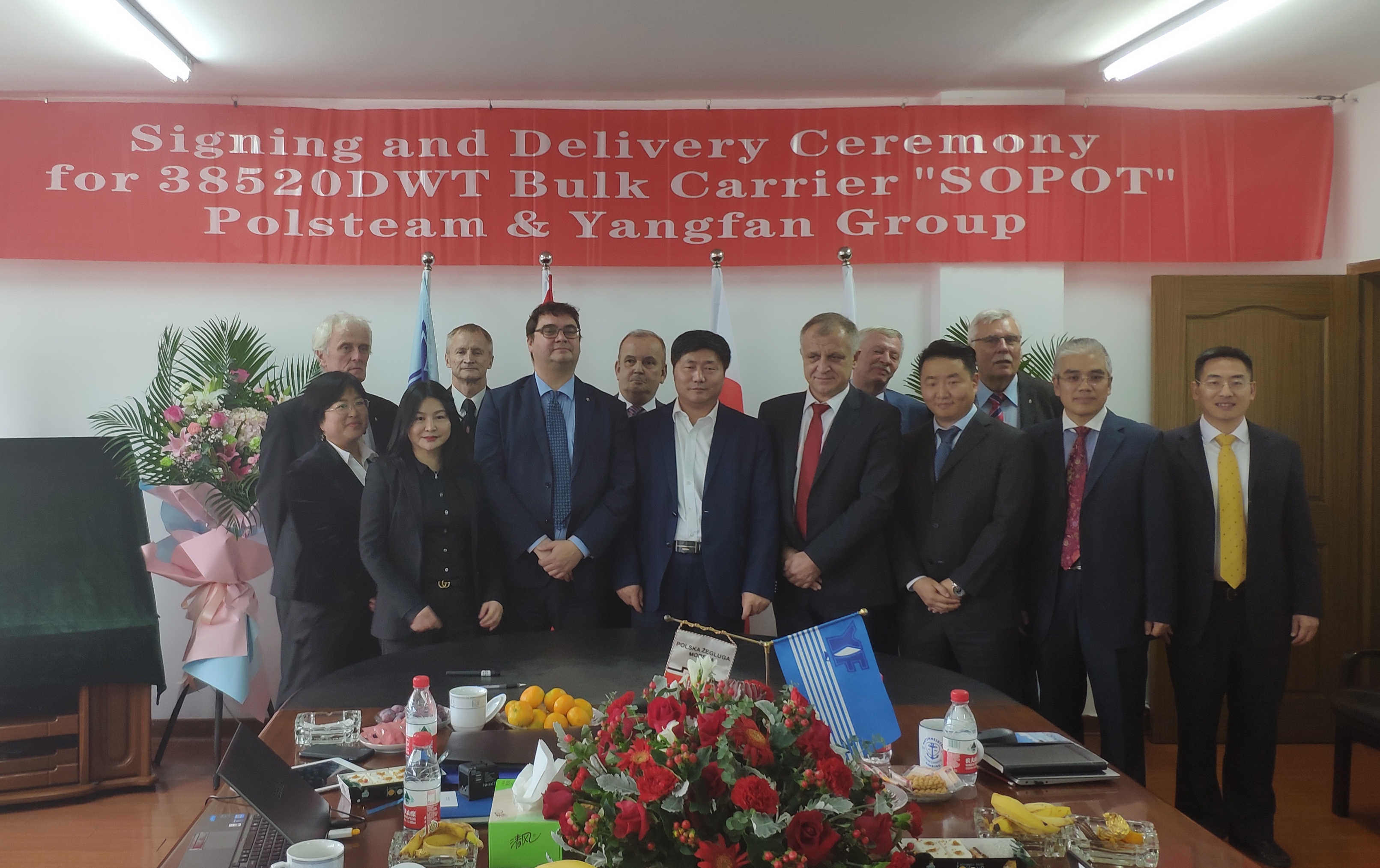 2019年10月22日,揚(yáng)帆集團(tuán)下屬浙江東海岸船業(yè)公司一日實(shí)現(xiàn)兩大生產(chǎn)節(jié)點(diǎn)。上午,一艘7800車系列汽車滾裝船入塢建造;下午,一艘38520噸系列散貨船正式簽字交付。